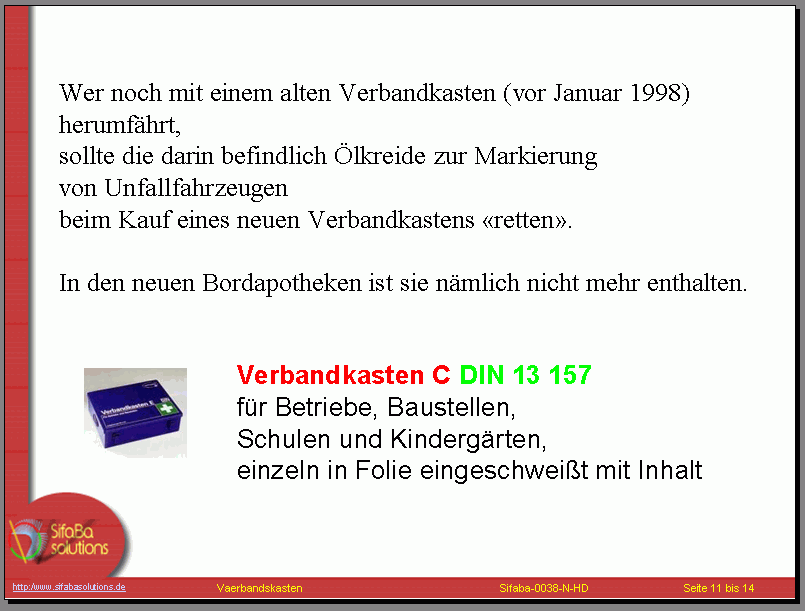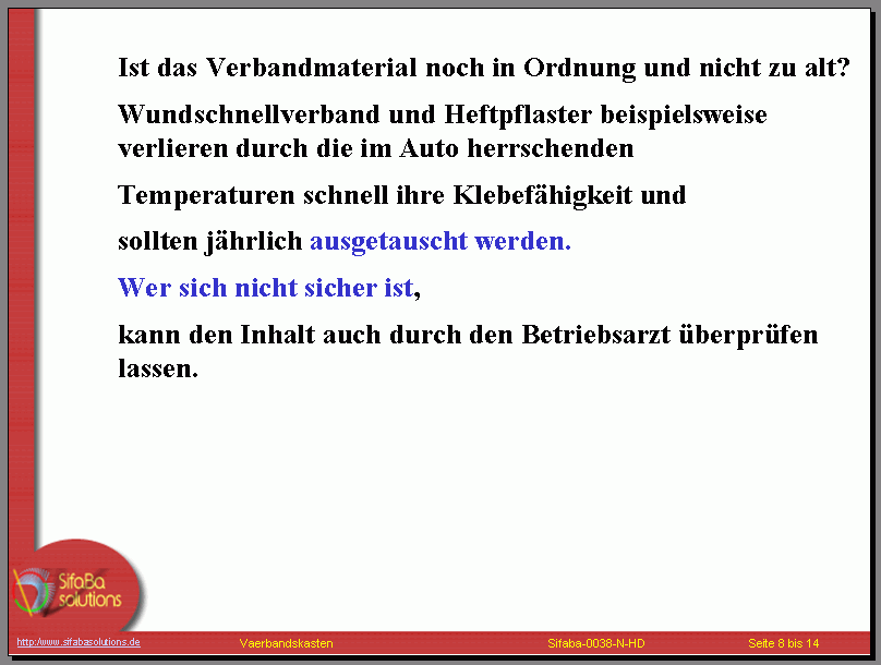 Verbandskasten " wurde in Zusammenarbeit mit unseren Betriebsärzten