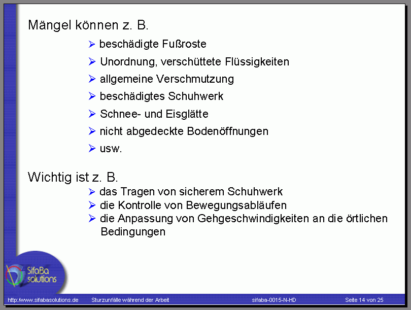 Präventionsmaßnahmen gegen Stolper-, Rutsch- und Sturzunfälle