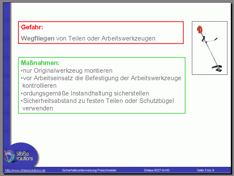 Unterweisung Freischneider " wurde in Zusammenarbeit mit unseren Sicherheitsingenieuren